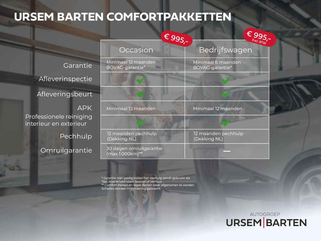 De accessoires hieronder in de tabel zijn optioneel aan te schaffen. Meer informatie bij uw dealer.